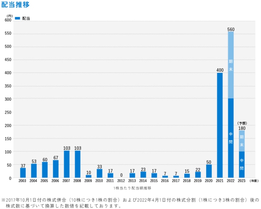 最後に商船三井の配当金の推移を確認しましょう。