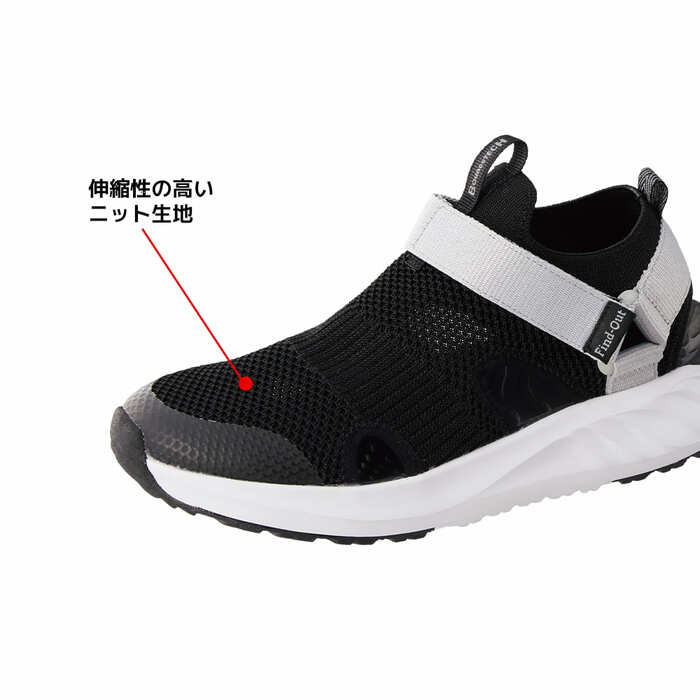 また、アッパーには伸縮性の高いニット生地を使用。速乾性と通気性があり、足のムレも気にならない快適さが体験できます。足をしっかり包み込み、さまざまな動きに対応できるホールド感もうれしいポイントですね。コーデしやすいブラックとブルーのカラーリングも注目です。