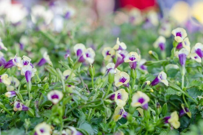 トレニア自体も涼やかな雰囲気ですが、ユーフォルビア ダイアモンドフロストを混植して爽やかさをプラスしましょう。白い花のように見えるところは苞で、ひらひらとした雰囲気がまるでカスミソウのようです。