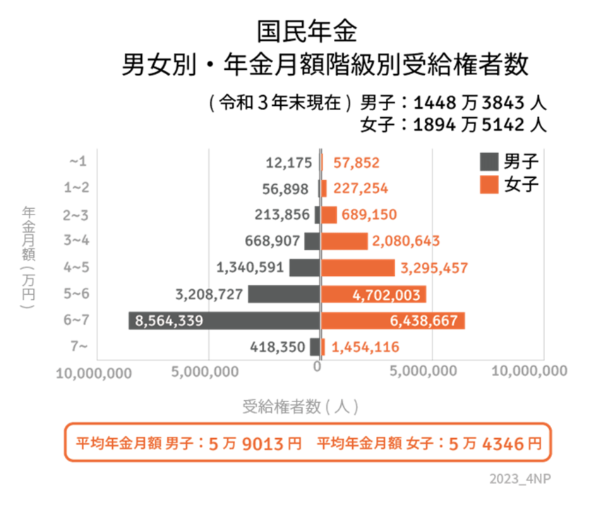 全体平均は5万6368円です。男女平均ともに5万円台となっており、受給額の差は小さいことがわかります。