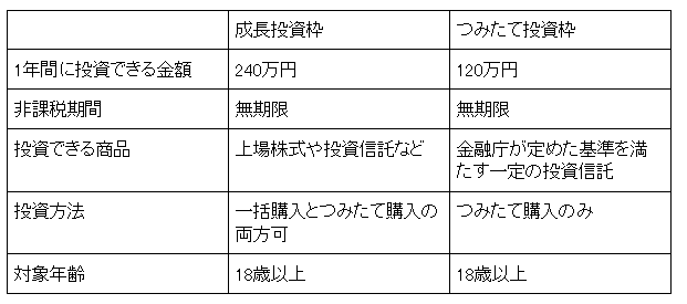 新NISAは成長投資枠とつみたて投資枠の2種類が用意されており、各々の違いは以下の通りです。