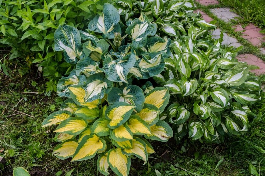 リーフプランツの代表格で、半日陰の庭を華やかに彩るギボウシ。大きな葉は存在感バツグンで、初夏に咲く薄紫の花が涼やかです。