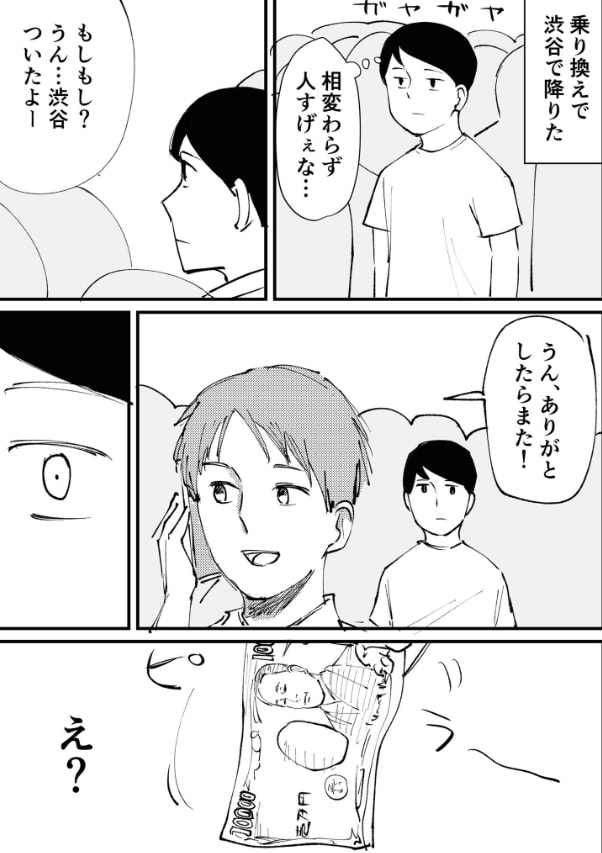 「@aobonro」さんは、休日の人がごった返す渋谷を歩いていました。ふと視線の先には、スマホで話をしながら歩く男性の姿が。「@aobonro」さんがぼんやり目で追っていると、あることに気がつきます…。
