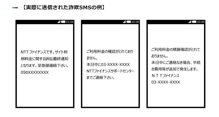 - NTTファイナンス株式会社「『NTTファイナンス』をかたった不審なSMSや訪問及び自動音声による電話にご注意ください」