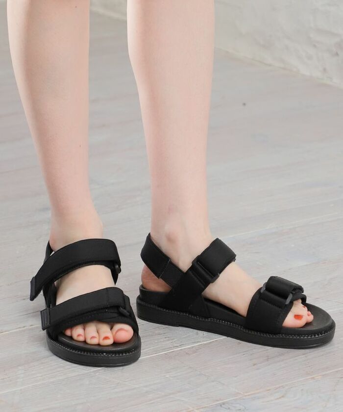 スタイル選ばず大活躍するスポーツサンダルです。夏のトレンドスタイルに欠かせないスポーティーなデザインが特徴的ですね。テープベルトのダブルストラップなので、ぴったりサイズに調節することが可能です。しっかり曲がるフラットな屈曲ソールで歩きやすさも抜群。