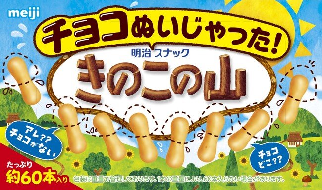 「チョコぬいじゃった!きのこの山」は、明治が7月18日に発表したロングセラーブランド「きのこの山」の夏限定商品です。特徴はビスケットとチョコで構成されたきのこの山からチョコを取り除いていること。まさに名前通りの商品です。
