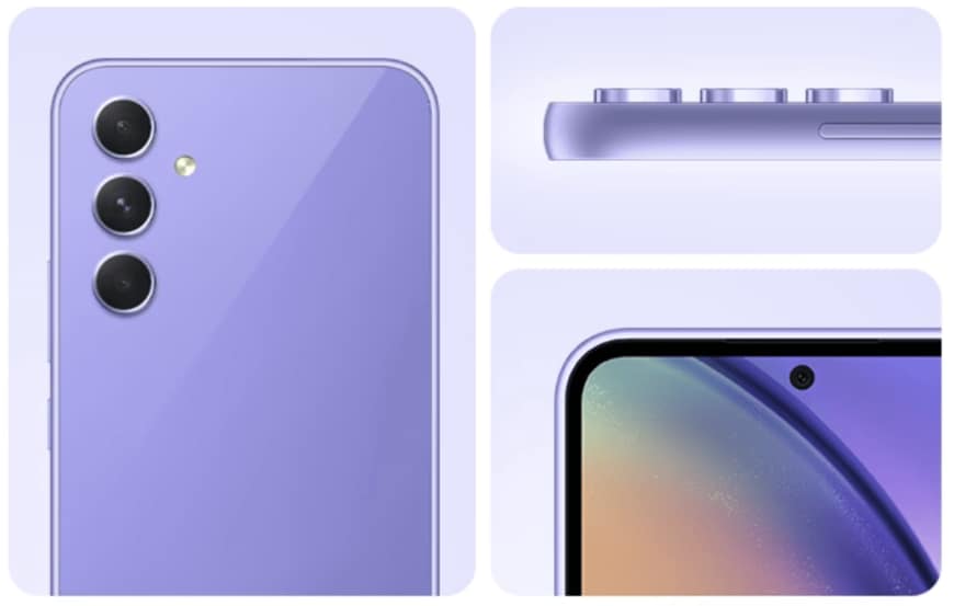 Galaxy A54 5Gは、背面に光沢のあるガラス加工を施したデザインを採用しています。カメラ部は前モデルGalaxy A53 5Gから一新されており、よりシンプルでスタンダードな見た目に仕上がっています。