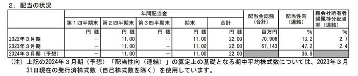 ENEOSホールディングスの株式を1年前に買い、持ち続けたとすると、「2023年3月期の中間配当」と「2023年3月期の期末配当」の計2回を受け取ることができます。