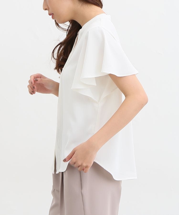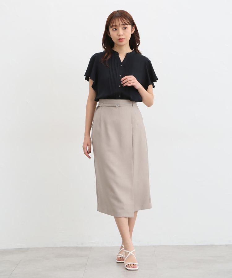 トレンド感あるキーネックが涼しげでおしゃれな「ピンタックブラウス」です。きちんと感もあるアイテムなので、ジャケットとの相性も良さそうです。