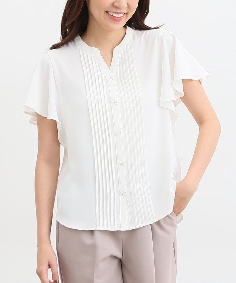爽やかなキーネックデザインが魅力! ジャケットとコーデをしてもおしゃれな「ピンタックブラウス」