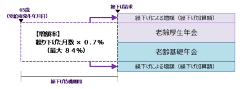 年金の受給を1ヵ月繰下げると、受給額が0.7%増加します。