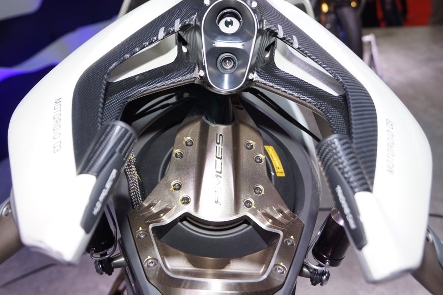 2台とも展示車両には両サイドに固定スタンドを装着しているが、実際は不要だ。また、自立制御が入るのは停止時、極低走行時のみで、通常の走行では解除される。当然だが、走行中に自立制御されたら今度は曲がりにくいバイクになってしまうからだ。