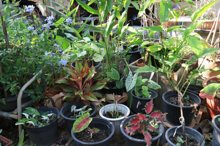 鉢が増えすぎて、庭がごちゃごちゃしている場合は、鉢の数を少なくするのも、ひとつの方法です。