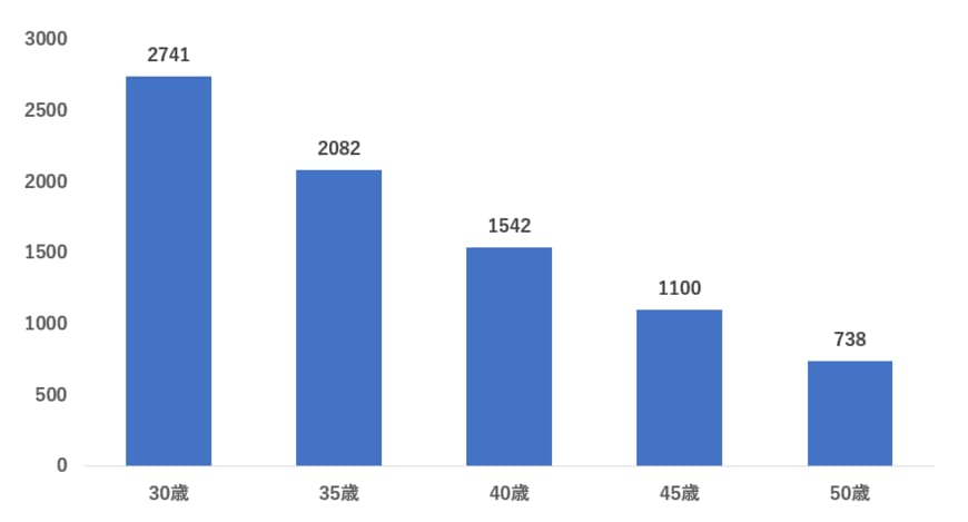 月3万円の積み立て、年利4%であれば無理なく長期にわたり投資を続けていけそうですが、この条件で65歳時点で2000万円を達成できるのは、30歳台中盤くらいまです。年齢が高い人は、年利を高くするか、積立額を増やすかになるでしょう。
