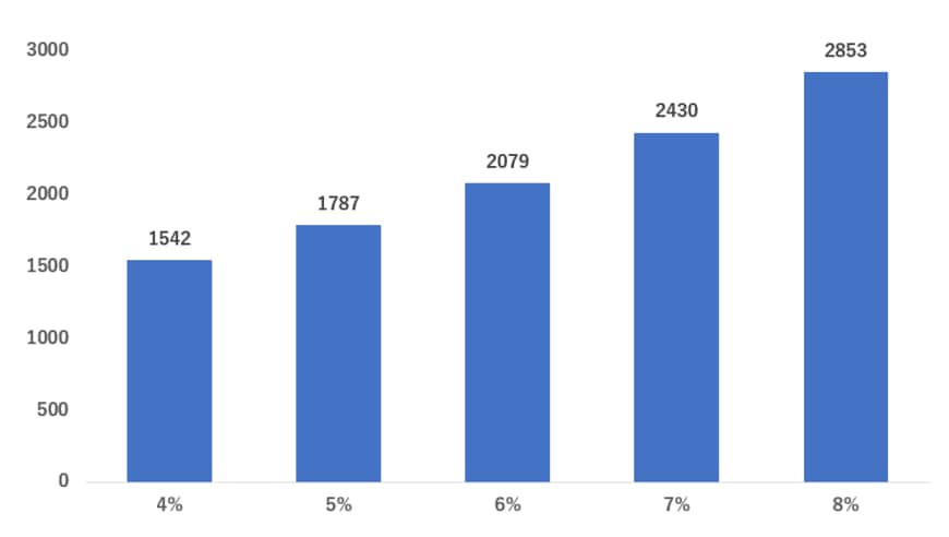 40歳から積立投資を始める場合、月1万円投資額を増やすごとに、65歳の資産額はおよそ約514万円増えます(【図表4】の誤差は四捨五入によるもの)。年利4%のままでも、月4万円に積立額を増やせば、65歳時点で2000万円は達成可能です。
