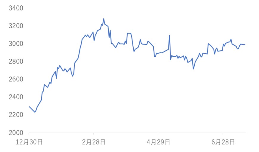 日本製鉄の2023年初来の株価推移(いずれも終値ベース)2022年12月30日~2023年7月18日