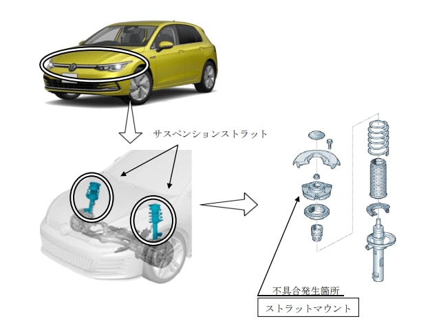 1. ゴルフ GTI2.0/180kWほか フロントサスペンションのストラットマウントの不具合 修理