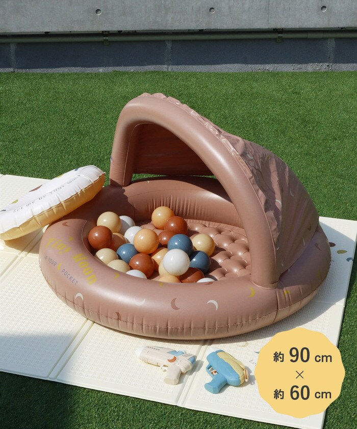 夏の日差しが強い日に嬉しいサンシェード付きのプールです。おしゃれなロゴと小さな月が散りばめられた可愛いデザインがおしゃれですね。底がエアークッションになっているので、キッズたちも快適に遊べます。対象年齢は3歳以上です。必ず保護者や大人が付き添って使用してくださいね。