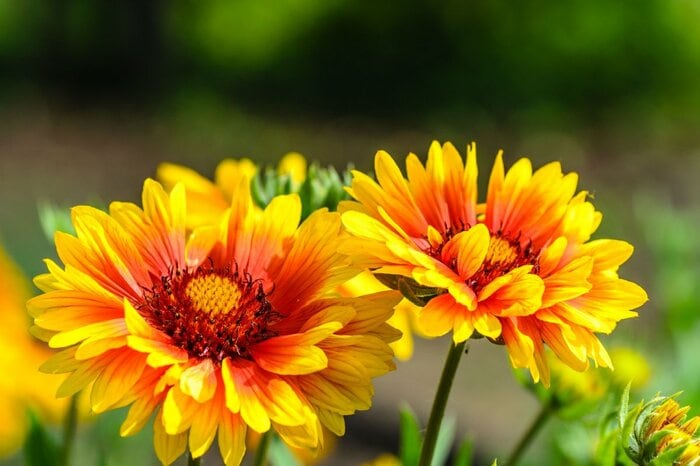 「勲章菊」とも呼ばれるガイラルディアは、鮮やかな花色と模様がパッと目を引く一年草(あるいは多年草)です。初夏から秋にかけて華やかな花を咲かせ、花弁の様子は、どことなくヒマワリにも似ています。
