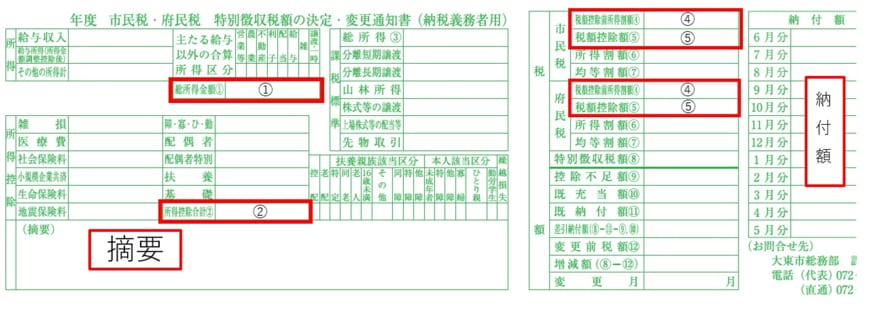 住民税決定通知書の様式は地方自治体によって異なりますが、主なチェックポイントは次の3つです。