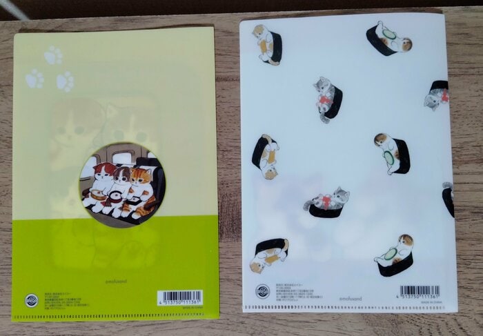 こちらは「A5見開きファイル」です。A4の書類を半分に折って収納することができます。写真のように「サラリーにゃん」(写真左)と「寿司にゃん」(写真右)の2種類があります。
