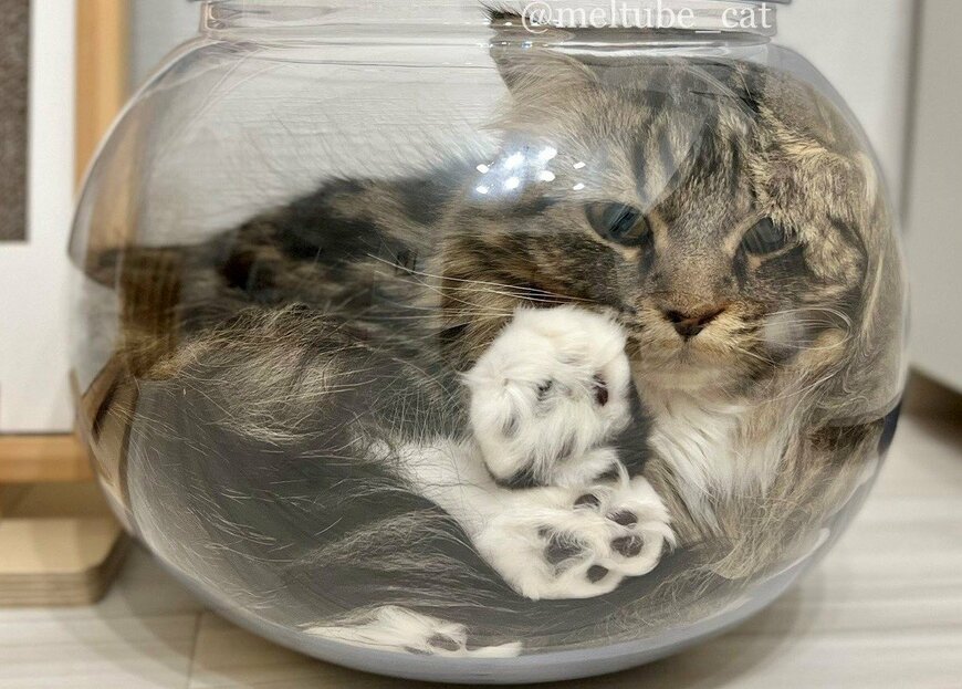SNSで反響を呼んでいる、透明の容器で液体化する猫さんをご紹介しました。