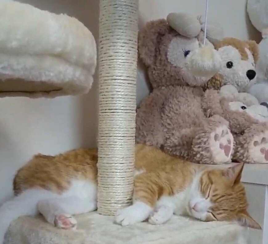 SNSで反響を呼んでいる、キャットタワーで眠る猫ちゃんの幸せあふれる一コマをご紹介しました。
