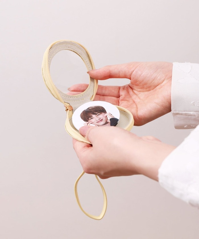 WEB限定の、推しの缶バッチを入れて一緒にお出かけできるケースです。ケース内のゴムベルトに缶バッチの針を通せば固定できるので、中で動き回らず安心です。バッグやリュックに取り付けられる便利なストラップ付きです。