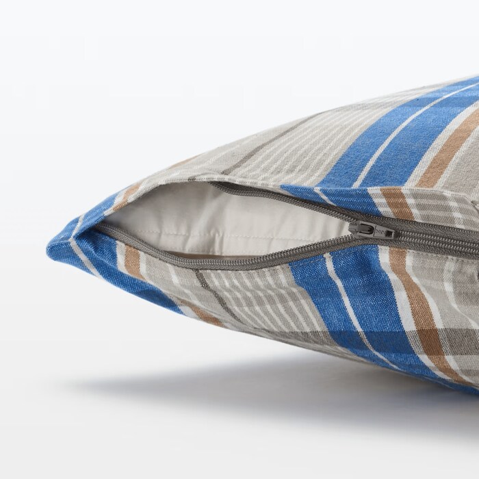 税込495円のクッションカバーでお部屋に爽やかなブルーのチェックをプラス