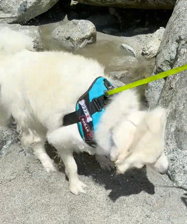 前に川遊びに行った時の同じ所でコケるソランとソラ父#サモエド #samoyed pic.twitter.com/65ri3mMixN