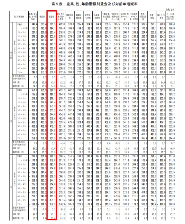 同調査では産業別の賃金についても発表しています。今回は「製造業界」に従事する30歳代の賃金にフォーカスを当てます。