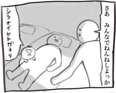 2歳のちょーちゃんとママが今から寝ようとしているところに、「みんなでねんねしよっか」と「@inu_eat_inu」さんが入ってきました。パパが来て喜ぶかと思いきや、なんとちょーちゃんからは「知らない人が来た」の辛辣な一言が…。
