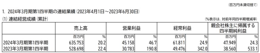 三菱自動車工業株式会社(7211)(以下「同社」という)が、2024年3月期第1四半期連結決算(対象期間:2023年4月1日~2023年6月30日)を発表した。