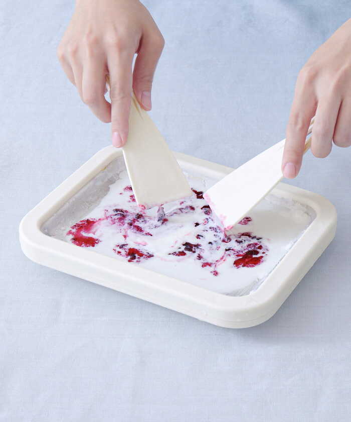 おうちでロールアイスやミックスアイス作りができるアイスプレートです。冷凍庫で冷やしたプレートの上にジュースやアイスクリームミックスを入れてかき混ぜるだけの簡単仕様。アイスクリームとナッツやドライフルーツといったお好みのトッピングを混ぜてお店のような本格的なアレンジアイスを楽しんでくださいね。