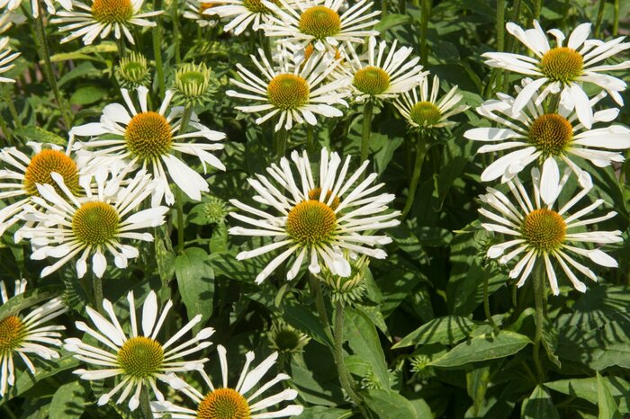 エキナセアのなかでも人気が高いホワイトスワン。名前どおり白鳥のような白い花が優雅な雰囲気です。黄色い中央部とのコントラストも鮮やか。90センチほどの高さまで伸びます。