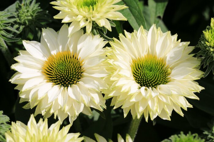 グリーンジュエルは緑の花が個性的。鮮やかな色合いが多いエキナセアの中で、独特の存在感を放ち、大人っぽい雰囲気をかもしだします。夏の庭に清涼感を与えてくれるでしょう。