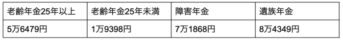 次は平均的な年金の受給金額をピックアップし、一覧表にまとめてみました。