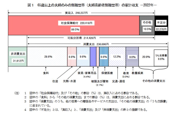 総務省統計局の「家計調査(家計収支編)調査結果」で65歳以上の夫婦のみ・無職世帯の家計収支を見ていきます。