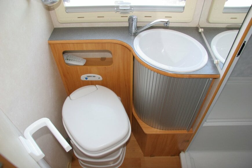 車体の大きいキャンピングカーに据え置きされているトイレがカセット式トイレ。車内に専用のトイレスペースを確保して便座を設置するため、家のトイレと近い使い心地です。