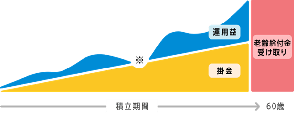 掛金と運用によって得られた利益は60歳以降に年金などの形式で受け取れるしくみです。