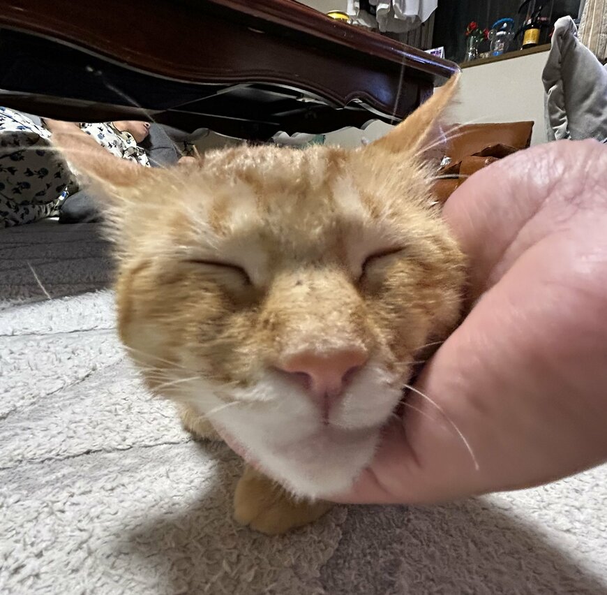 「ワタシ 去年7/21に保護され パパが誕生日にしてくれました! 推定2歳になります(おじいちゃんじゃないのよ…)」
