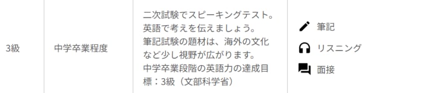 英検の3級は中学卒業程度の英語力を測定するため、内容もワンランクアップします。