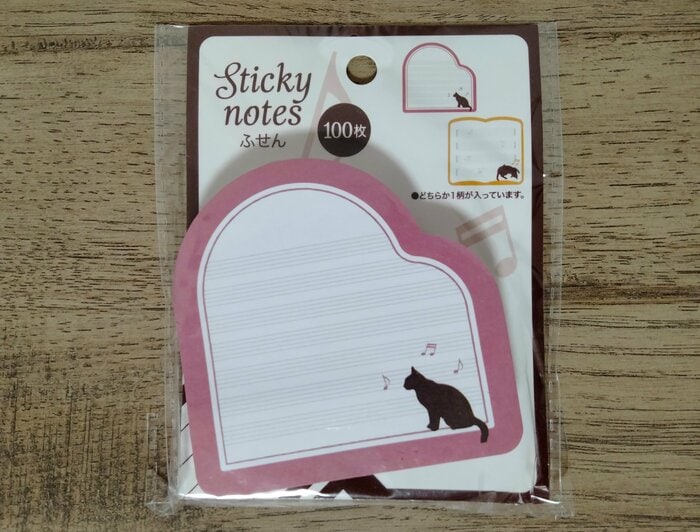 最後はこちらです。五線紙がかわいらしい付箋です。1つのパッケージに100枚も入っています。