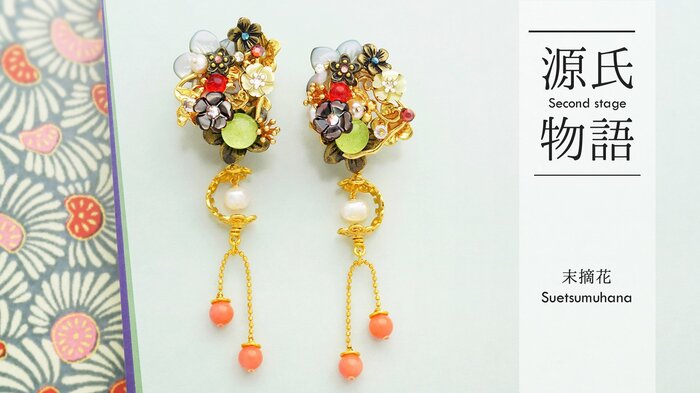 末摘花は、容姿は醜いとされるものの性格は素直とされる純粋な女君です。こちらのイヤリングは、末摘花のそんな純粋さを感じさせるデザインになっています。