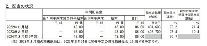 - 2023年3月期・期末配当:43円
