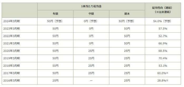 最後にゆうちょ銀行の配当推移を確認しましょう。