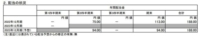 - 2022年12月期・中間配当:113円