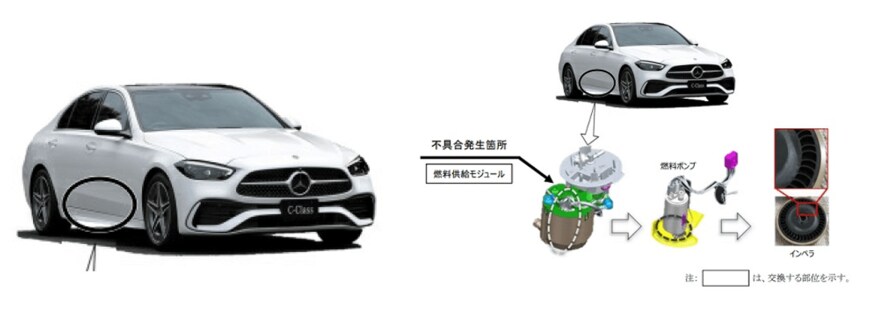 - 対応方法:全車両、燃料供給モジュールを対策品の燃料ポンプが組み込まれている燃料供給モジュールに交換する