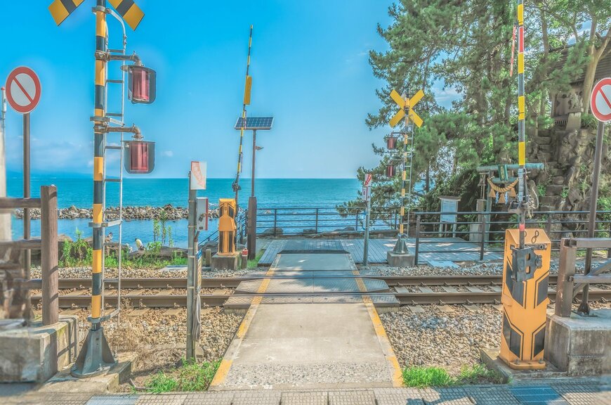 Twitterで注目を浴びている、「海の見える踏切」をご紹介しました。