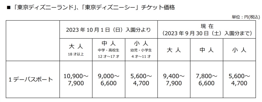 - 株式会社オリエンタルランド ニュース「10月1日入園分以降のパークチケット変動価格帯について」